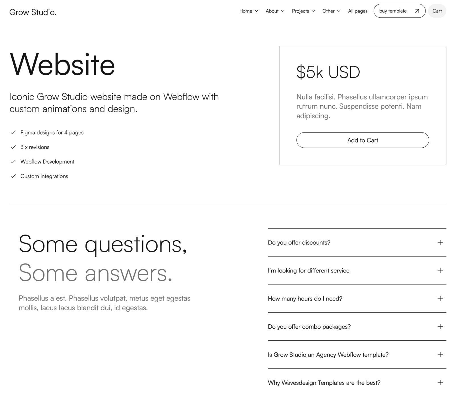 Grow Studio Agency Template comes with eCommerce set up, so you can start selling your works straight away.