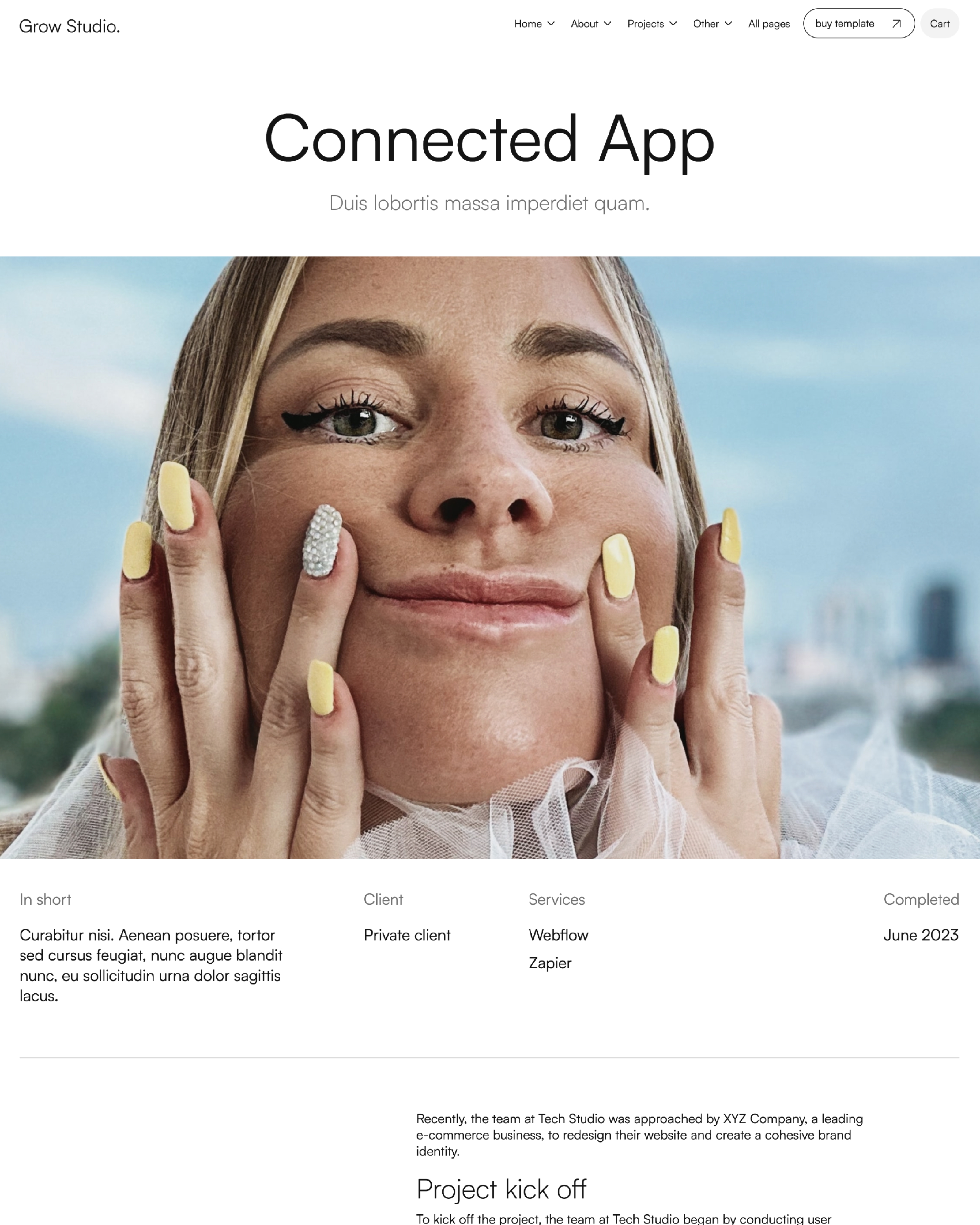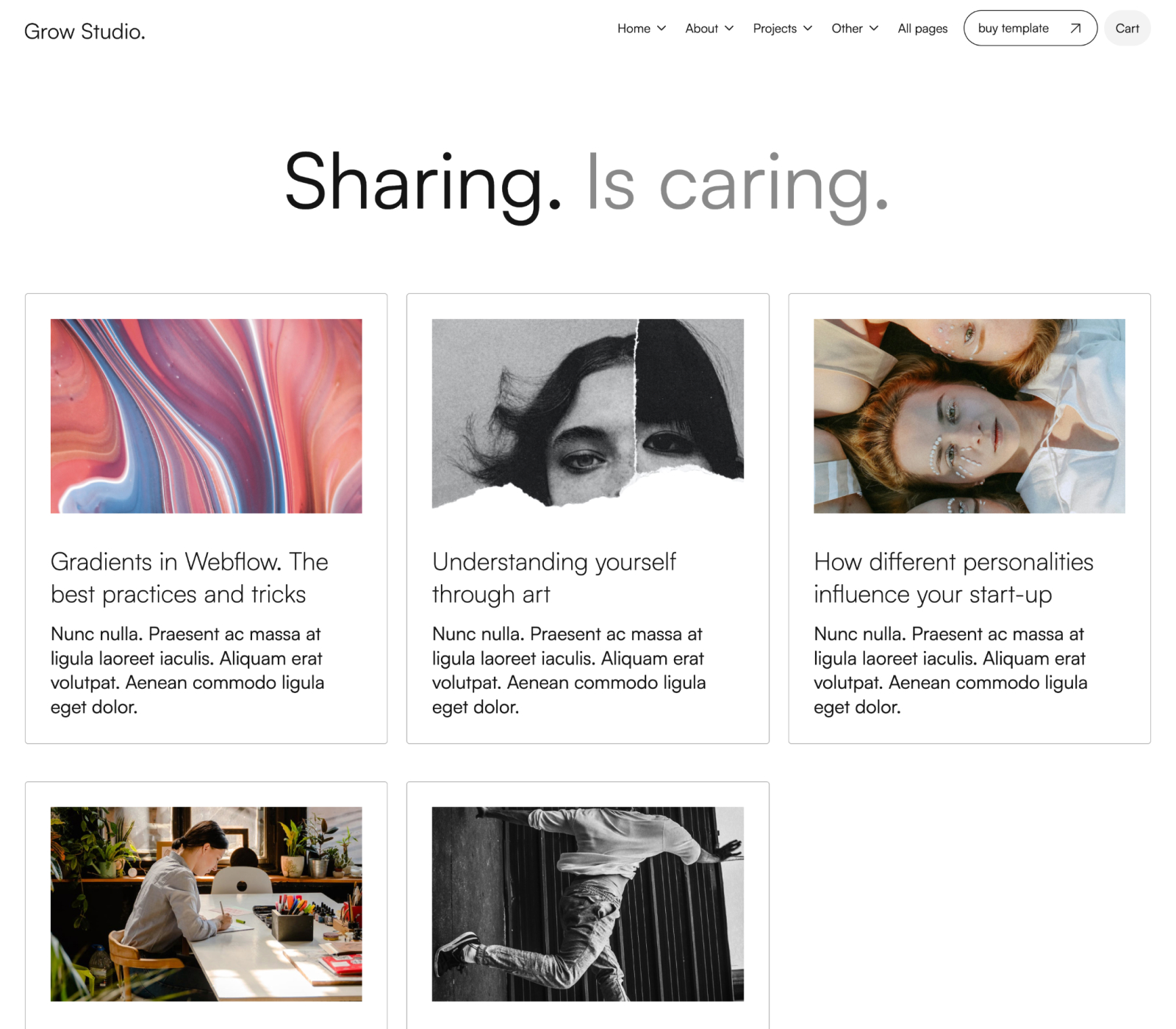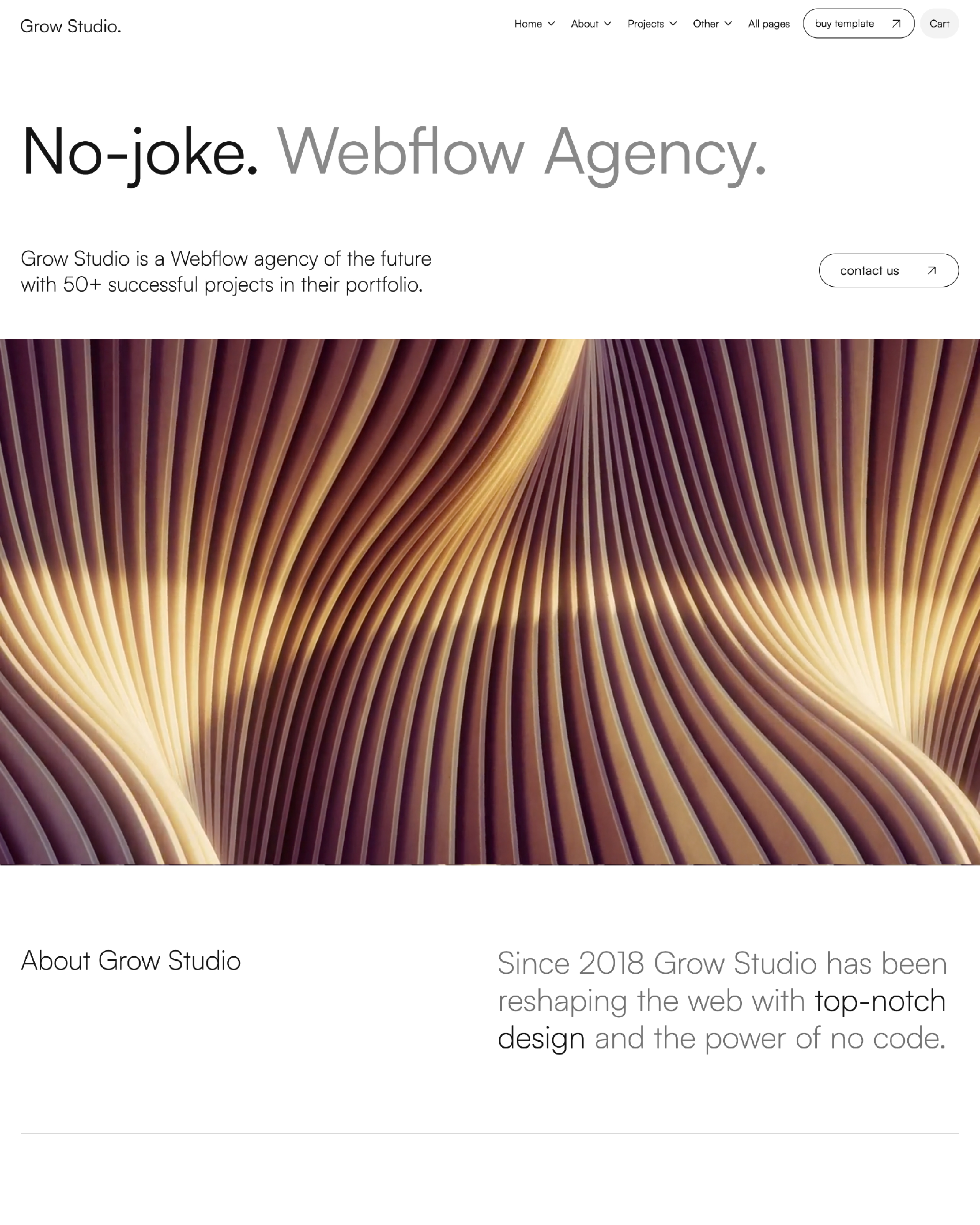 Grow Studio includes a projects, project service, careers and blog collections that are made on the powerful Webflow CMS. This will let you add new content extremely easily.